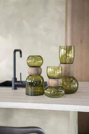 Fallegur vasi úr gleri og við.