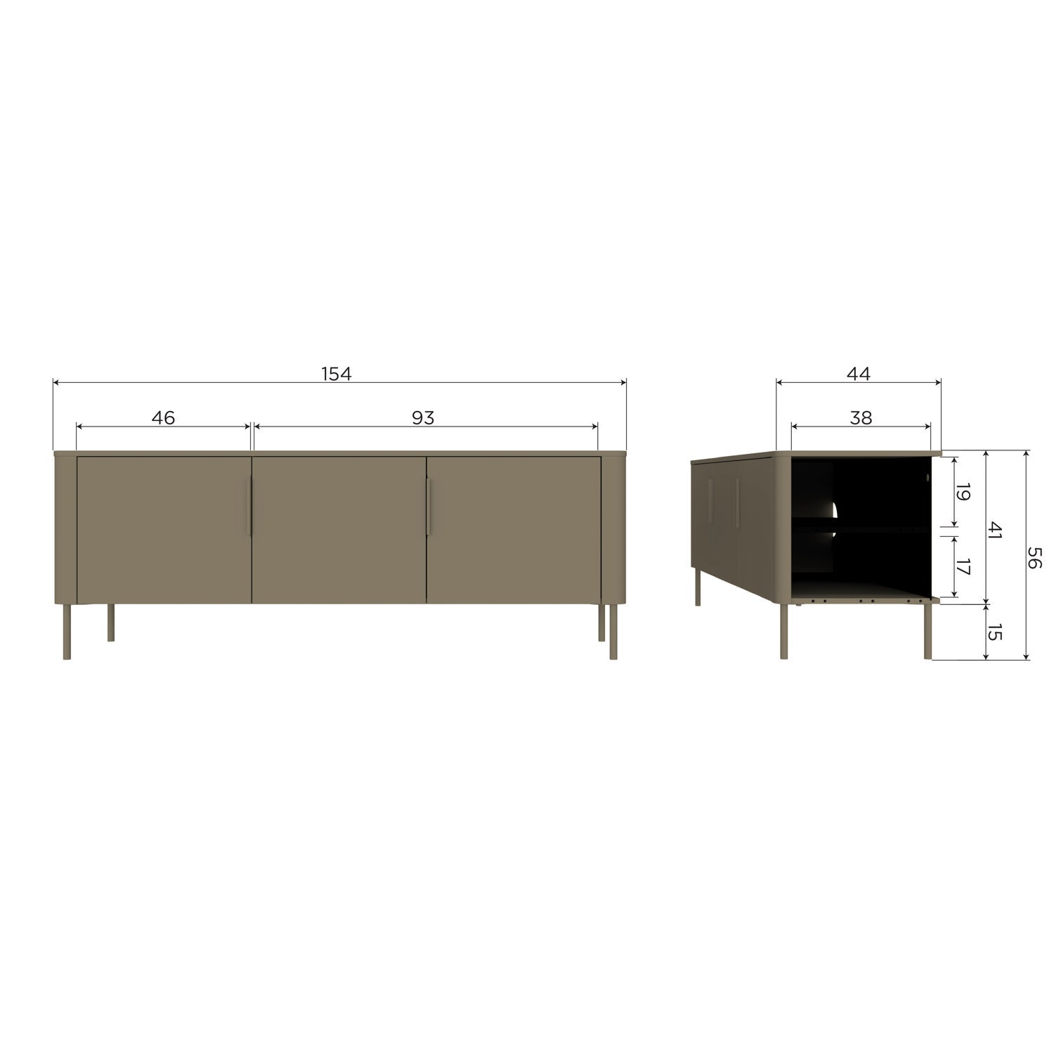 - H 56 cm x W 154 cm x D 44 cm
