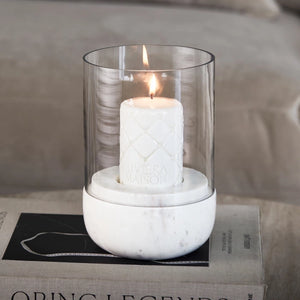 Bring a modern and luxurious feel to your home with the Céline windlight. The glass tube design combined with the marble base makes this windlight a sophisticated addition to your interior. With a height of 20 cm and a diameter of 14 cm, it fits perfectly on a cabinet or table, where it radiates warmth and style.