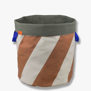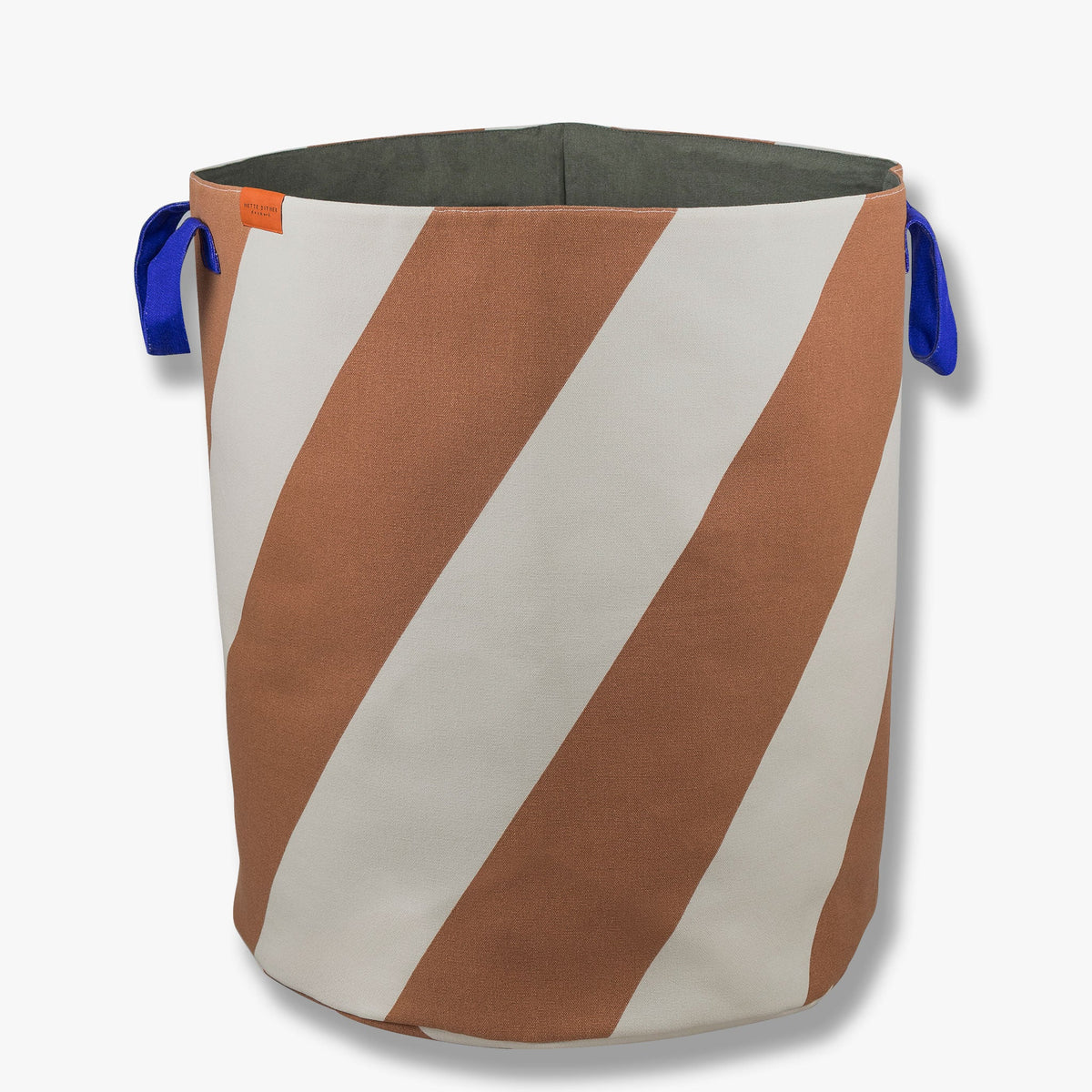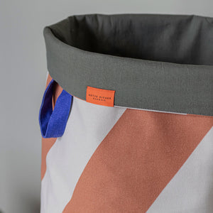 Keep your laundry in order with the spacious and decorative DIAGONAL laundry bag from Mette Ditmer. The bag features wide diagonal stripes in sand and brick – a bold, graphic combination that brings warmth and personality to the room. The interior is lined in deep olive-green, while contrasting blue handles make it easy to carry from room to room.
