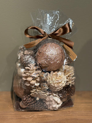 Fullur poki af fallegu jólaskrauti frá Rastelli - könglar & boltar í Rose Gold