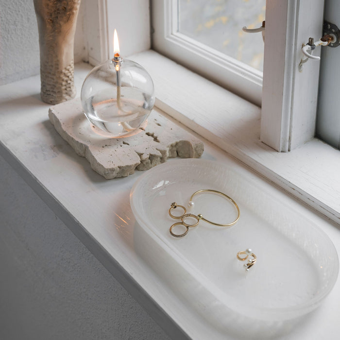 Fallegur bakki úr opalgleri.